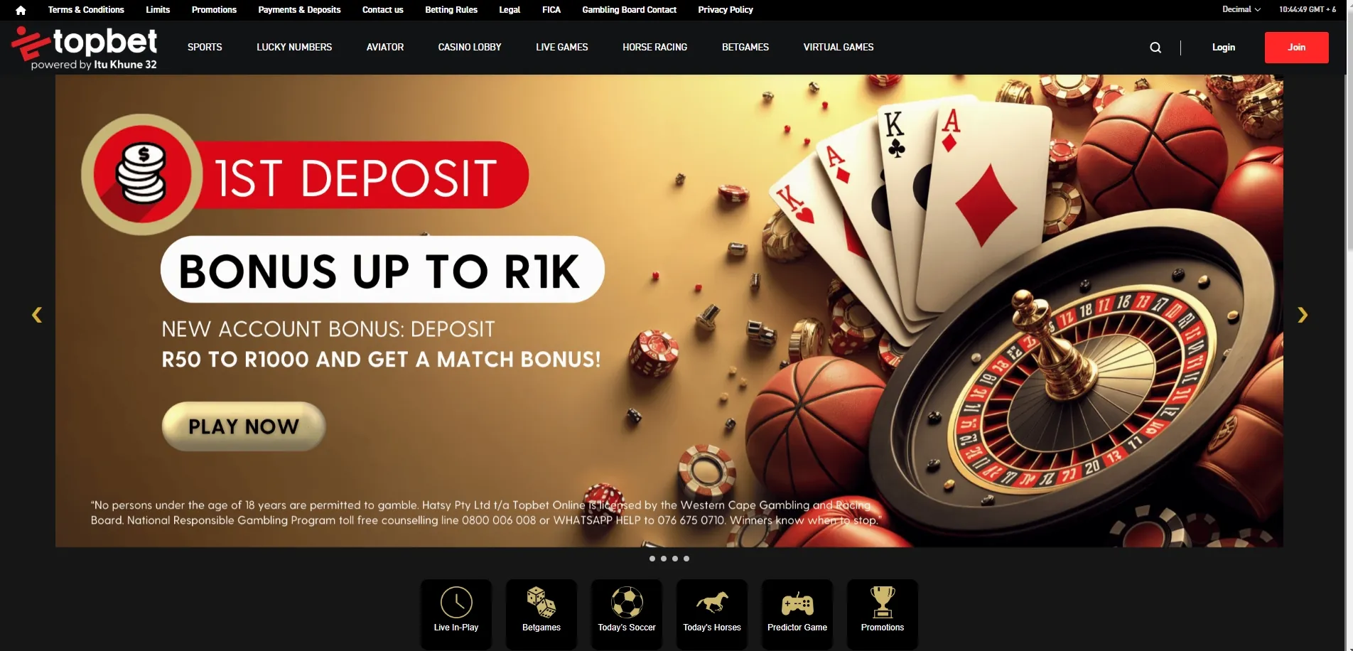 100% on the first deposit. The minimum bonus amount that can be claimed is R50 and the maximum bonus amount that can be claimed in this promotion is R1 000. Your Bonus can only be used on Sports or Horseracing single bets (no multi-bets). The Bonus needs to be wagered x4 at minimum odds of 1.5 or more. You have 7 days (168hrs) from your registration date to meet the bonus requirements before the bonus will expire. You can learn more about the terms and conditions and other promotions here.