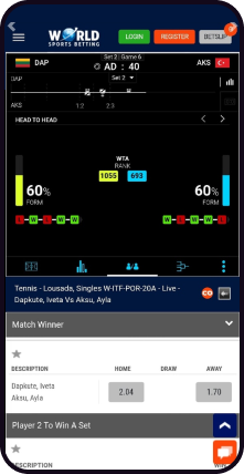 The absolute advantages of the World Sports Betting App include live live-broadcasts of all major events, as well as prompt and well-established feedback from the support service to resolve problems and topical issues.
